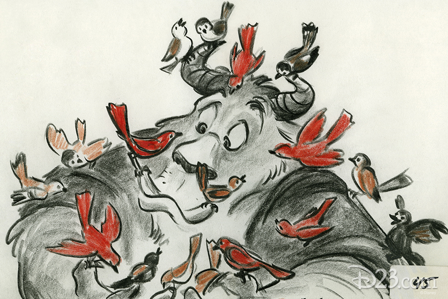 野獸與鳥兒玩耍的畫面融化了貝兒的心。