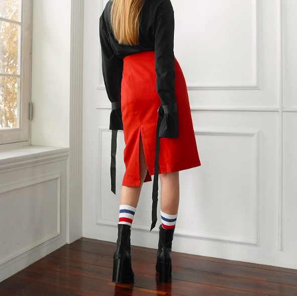 細跟高跟鞋搭大紅色襪子真的非常性感!很多明星藝人也都喜歡細高跟鞋配上襪子,因為可以性感中帶著可愛,是很令人著迷的小技巧。