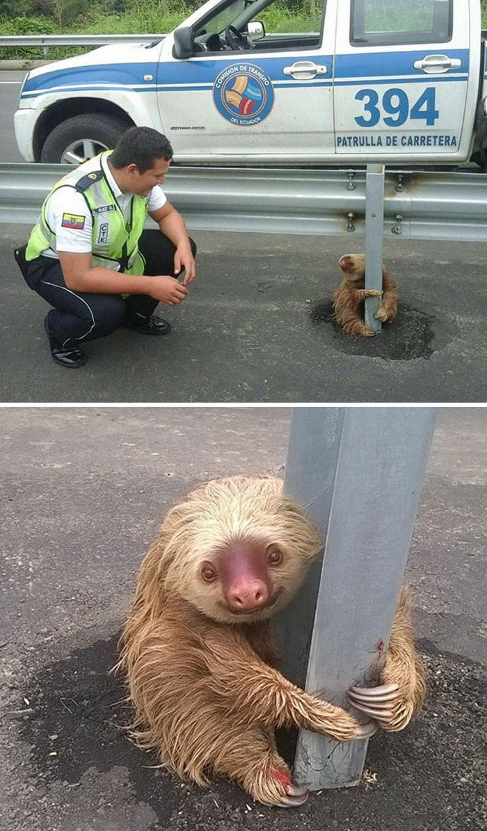 這隻可愛樹懶抱柵欄賣萌的照片,讓很多人都融化了~這小傢伙其實是想要到馬路的另一頭,但對於全世界最慢的動物來說,這並不容易!幸好員警及時幫助,牠才成功脫困!這個史上最可愛的救援,其實背後隱藏人類過多開發的隱憂,值得我們反思。